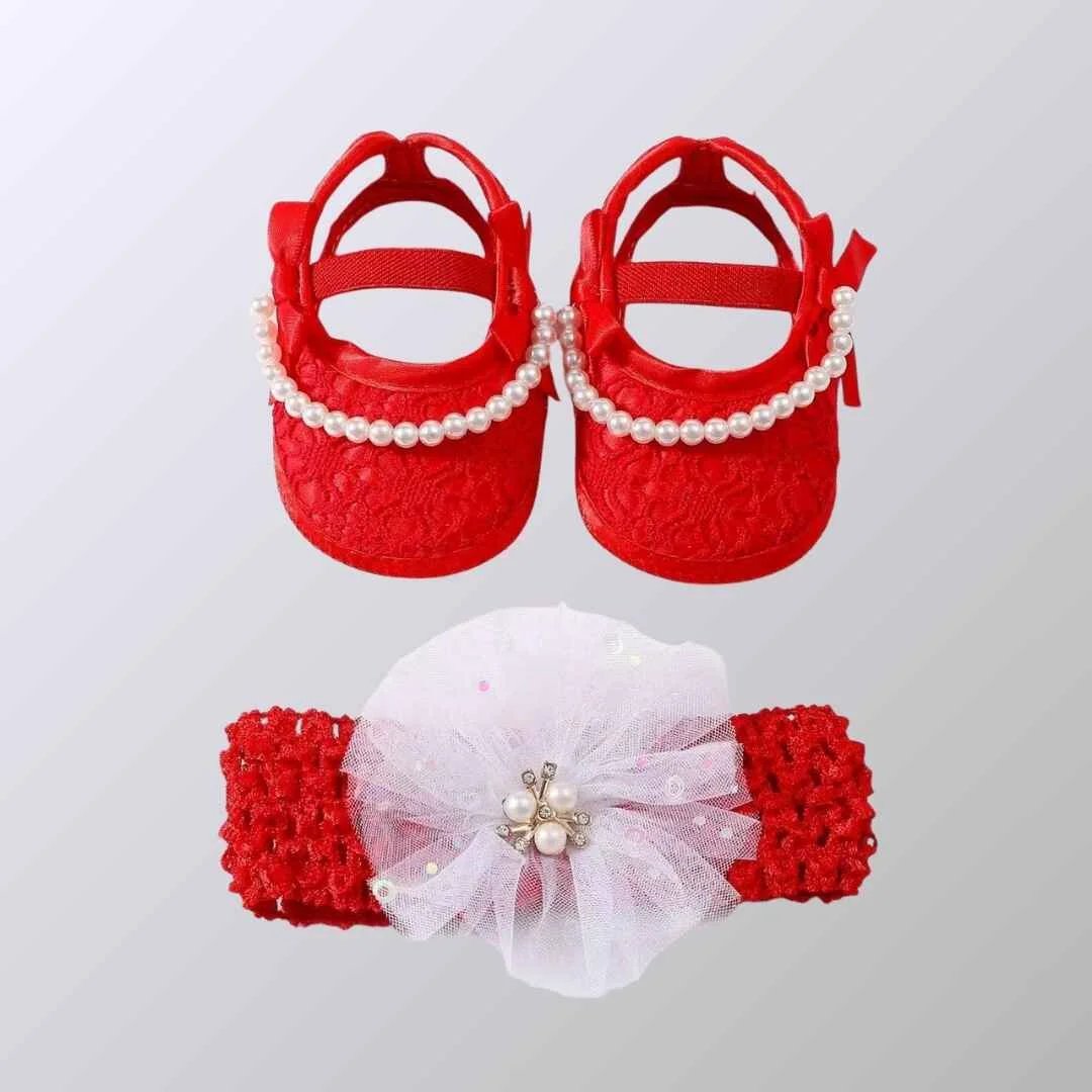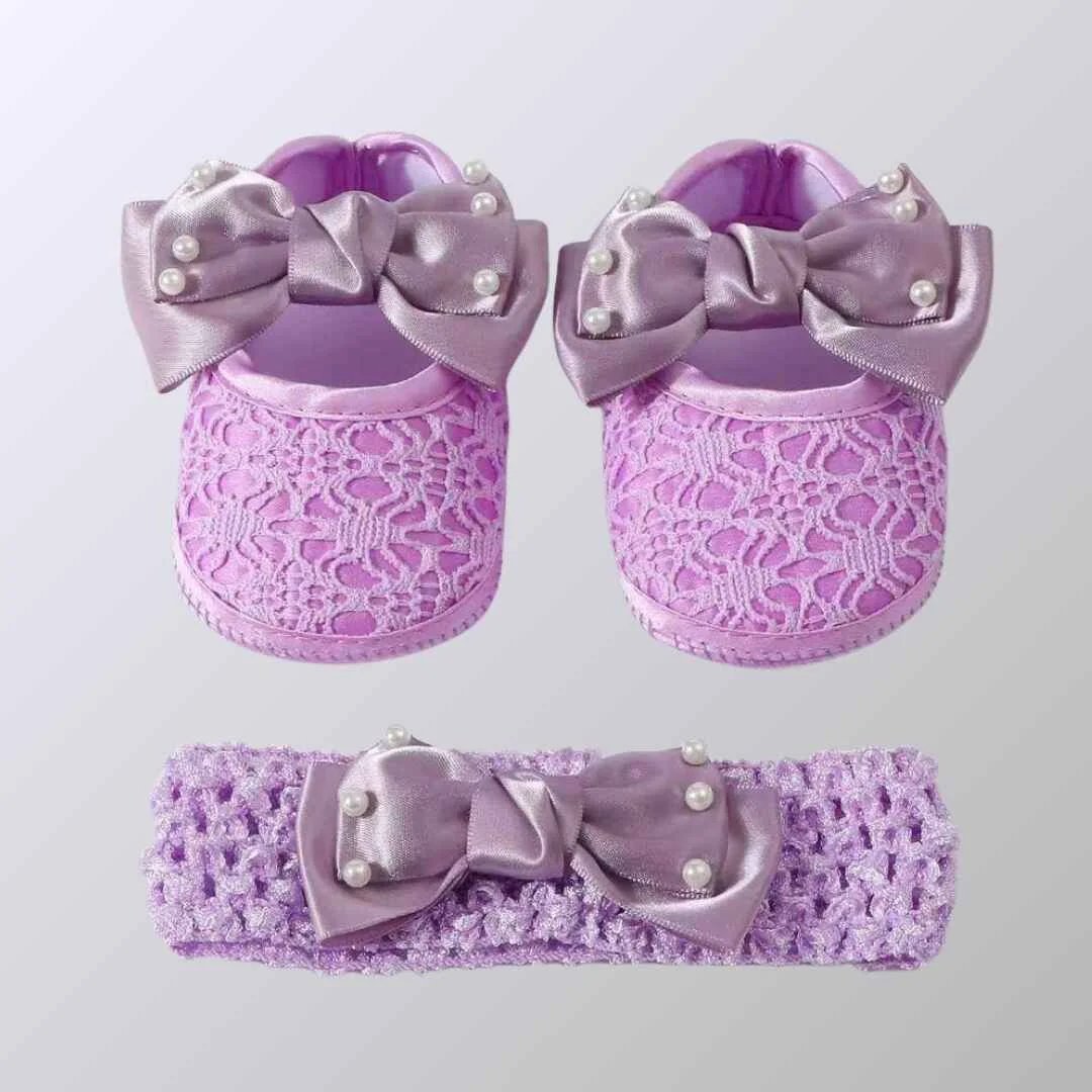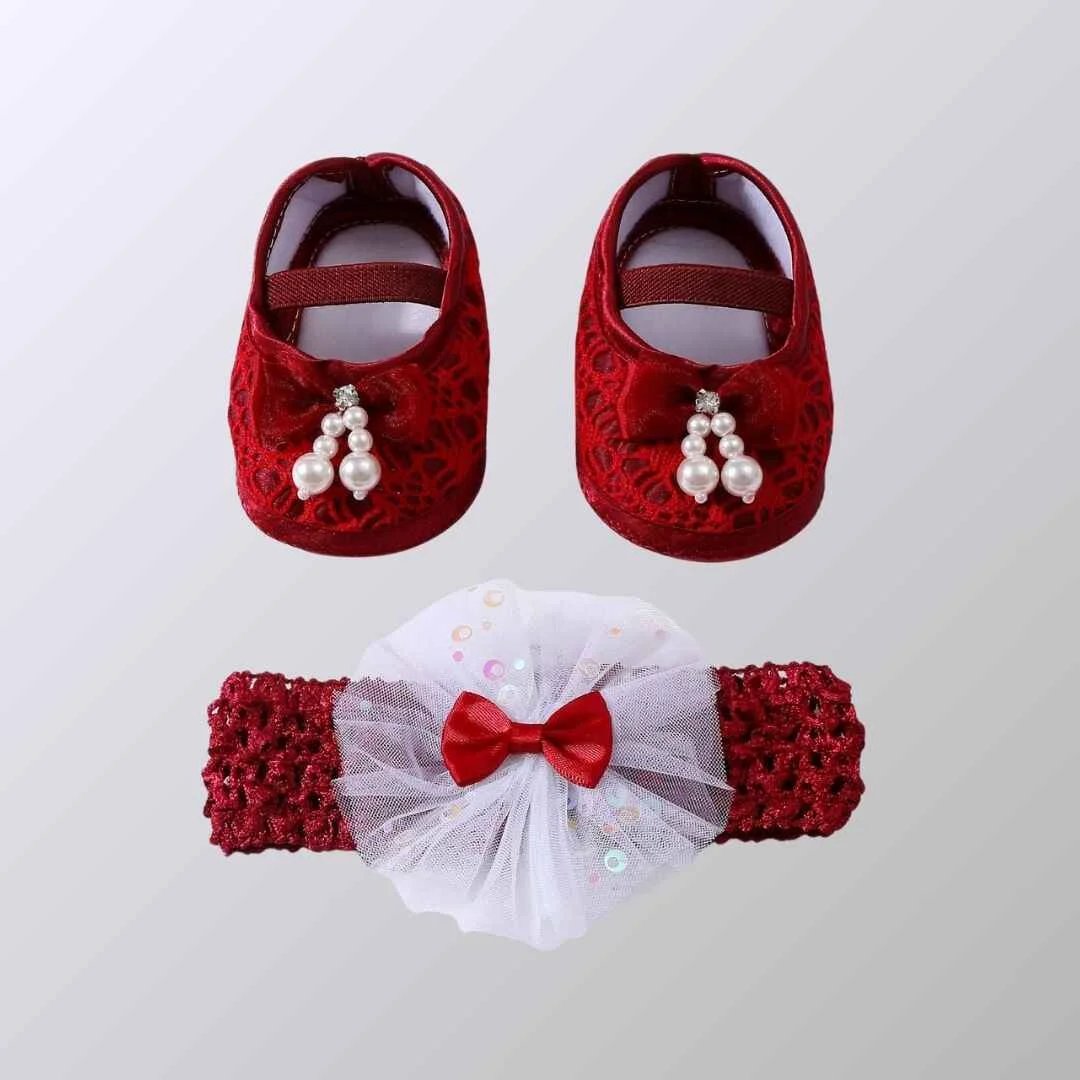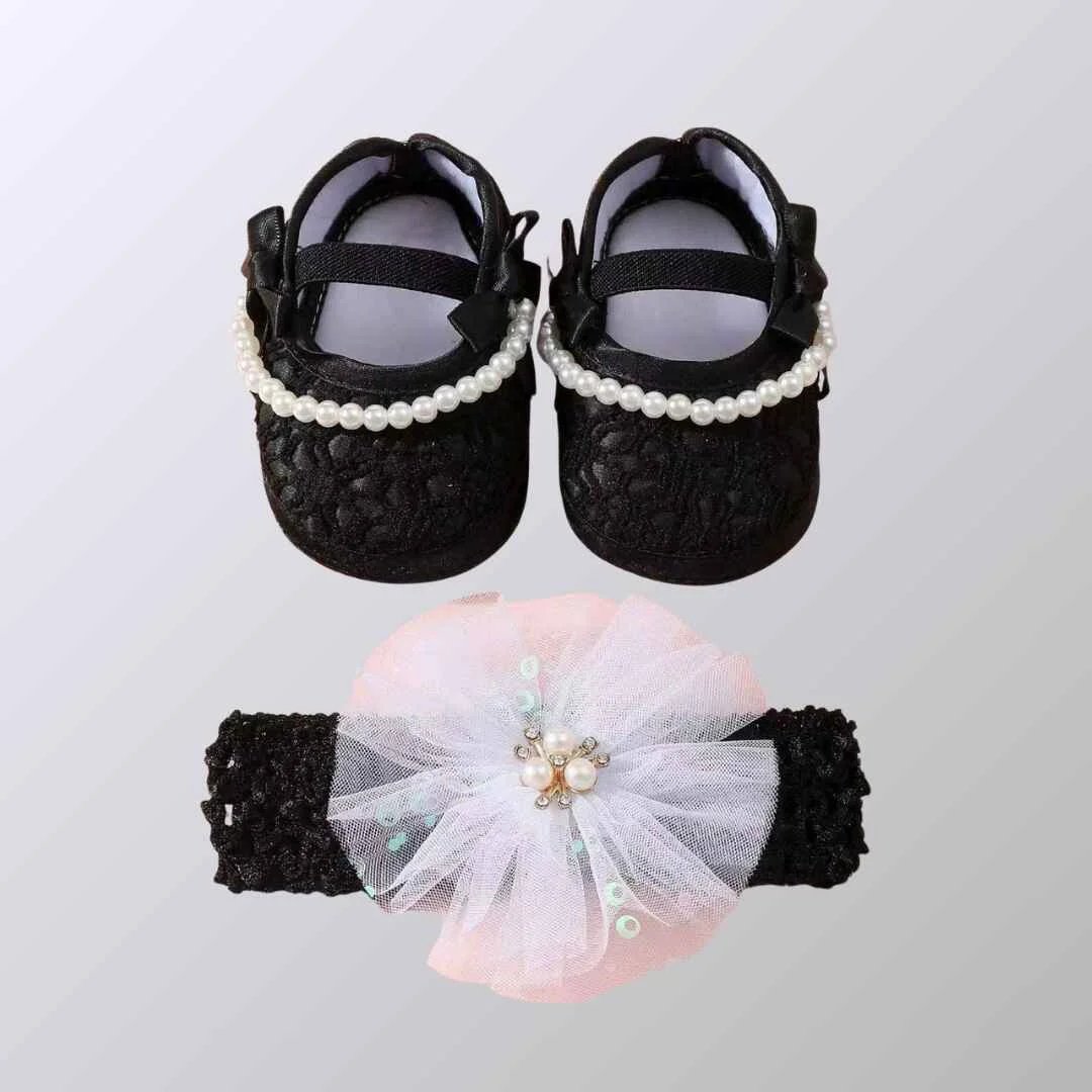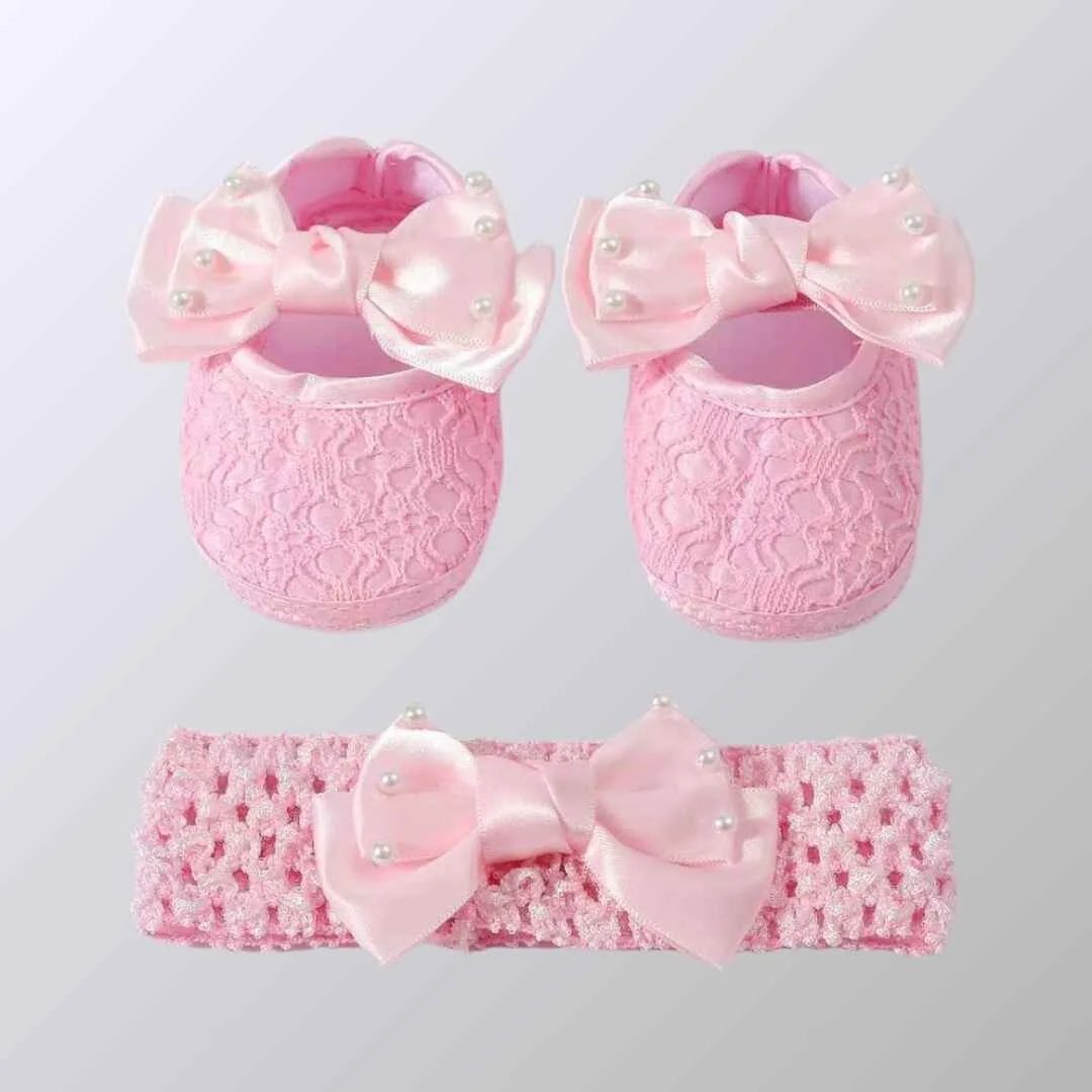বেবি গার্ল শু ও হেয়ারব্যান্ড সেট – আরামদায়ক ও স্টাইলিশ পারফেক্ট সেট